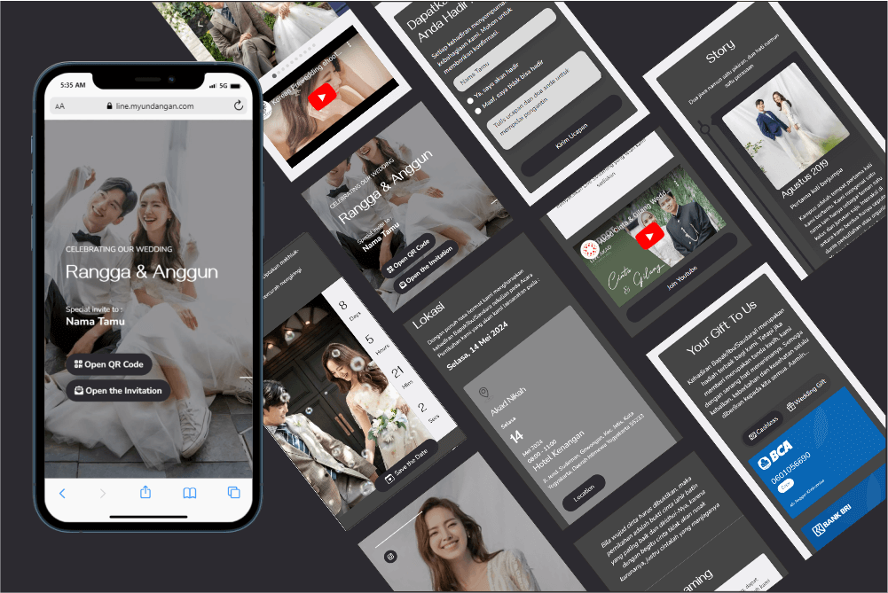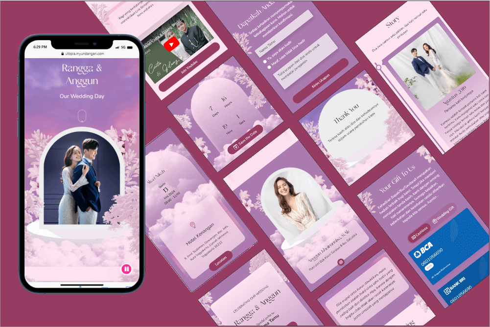 Setiap template memiliki keunikan dan ceritanya sendiri, dirancang dengan penuh perhatian dan keindahan. Temukan template yang sempurna untuk menggambarkan cinta dan kepribadian unik kamu, berikan sentuhan pribadi pada undangan pernikahan kamu yang tak terlupakan.
